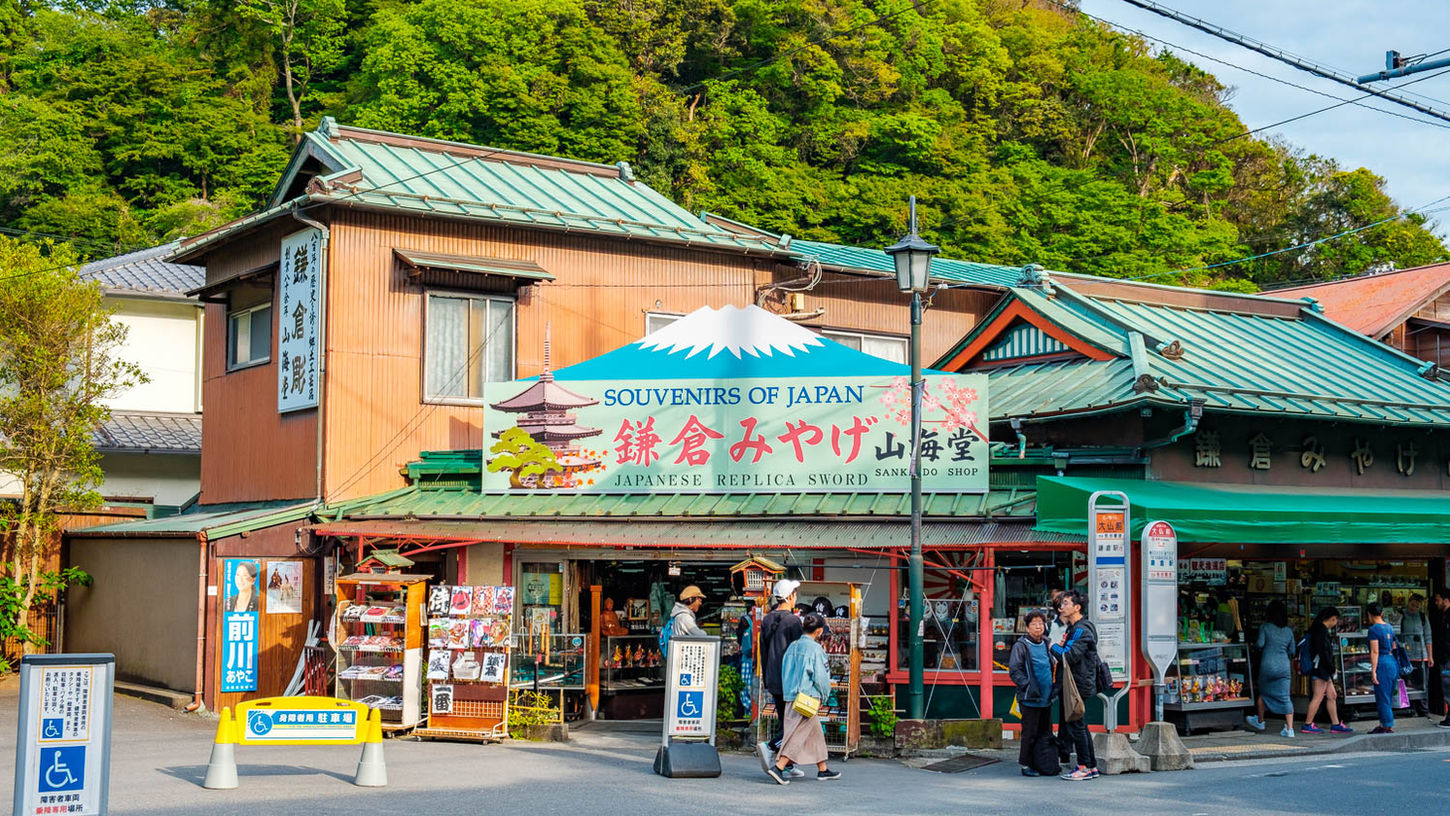 Stroll Kamakura's most beloved shopping street. Browse local crafts, pick up omiyage, and try the street food — hatosabure biscuits, matcha soft serve, and seasonal treats.