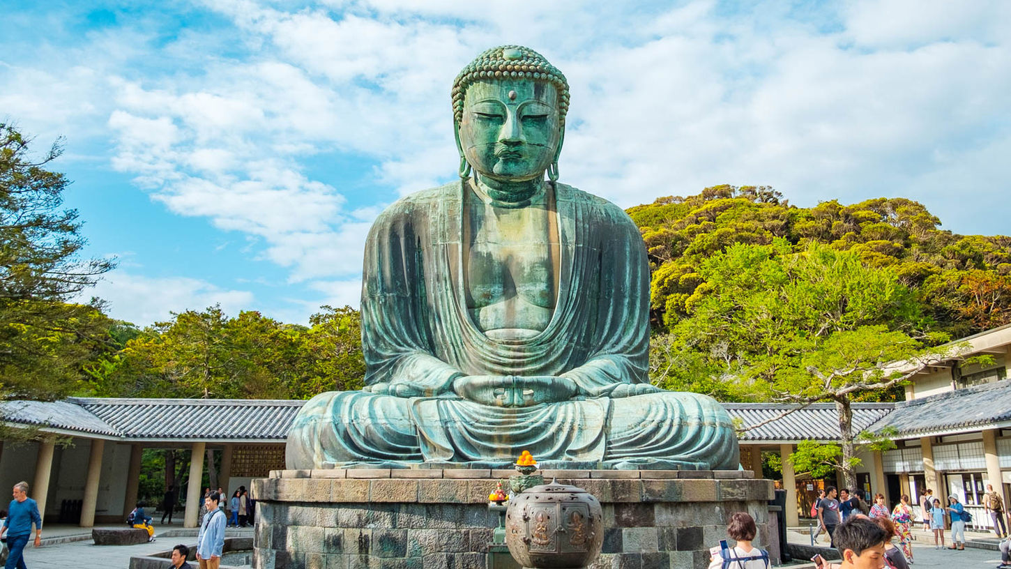 Kamakura's most iconic landmark — a 13.35-metre bronze Buddha seated in the open air since a tsunami destroyed its hall in the 15th century. Step inside the hollow statue for a unique perspective.